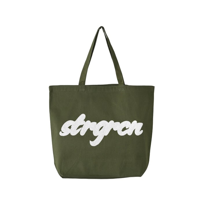 カーキ×ホワイト トートバッグ[strgrcn]ロゴプリント STRANGERACCOON
